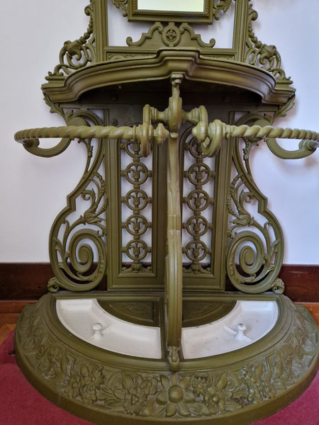 Garderobe mit Schirmständer, Gusseisen, grün bemalt, ca. H 200 x B 100 x T 50 cm