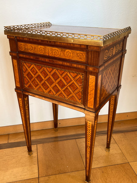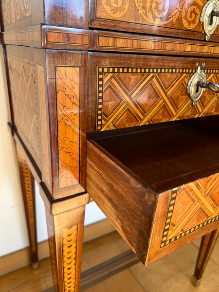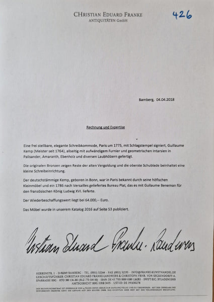 Schreibkommode, Paris um 1775, mit Intarsien, signiert, erworben für Euro 64'00.00 in der Kunsthandlung Christian Eduard Franke, Bamberg (siehe Rechnung/Expertise)