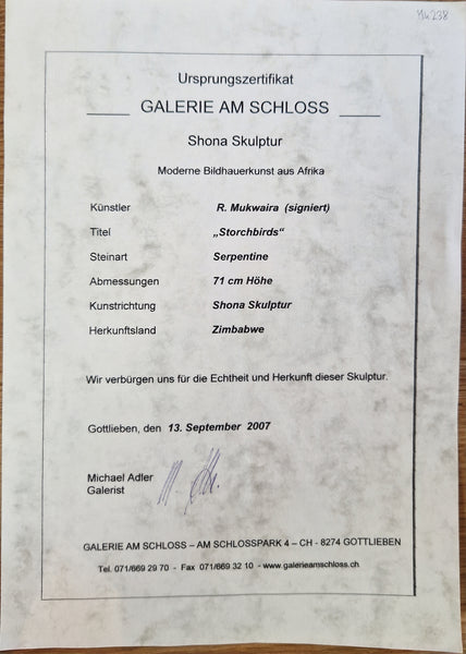 Shona Skulptur "Storchbirds", signiert, ca. H 71 cm, ohne Sockel, mit Zertifikat