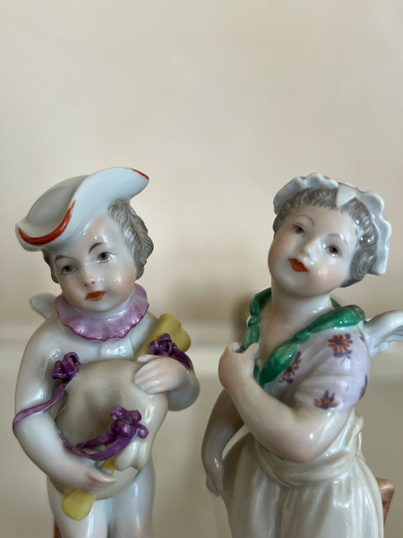 2 Porzellanfiguren "Amor" und "Amor mit Dudelsack, je ca. H 12 cm