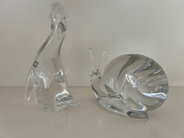1 Daum Schnecke ca. H 11 x L 19 cm und 1 Murano Ente, ca. H 20 cm