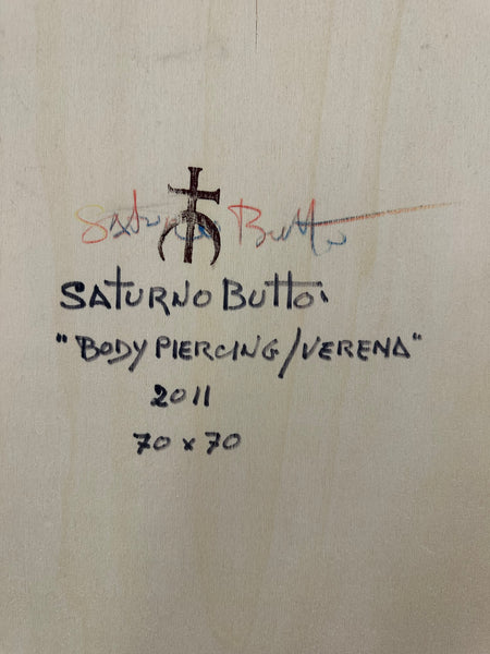 Oel/Holz, "Body Piercing/Verena" 2011, Bildgrösse ca. 70 x 70 cm