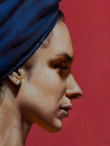 Oel/Holz, "Corinna allo Specchio", 2022, Bildgrösse ca. 70 x 70 cm