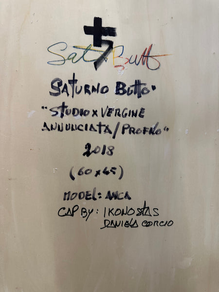Oel/Holz, "Studio X Vergine Annunciata/Profino" 2018, Model: Anca, Bildgrösse ca. H 60 x B 45 cm