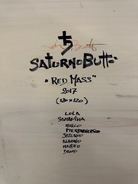 Oel/Holz, "Red Mass" 2017, Bildgrösse ca. 120 x 120 cm